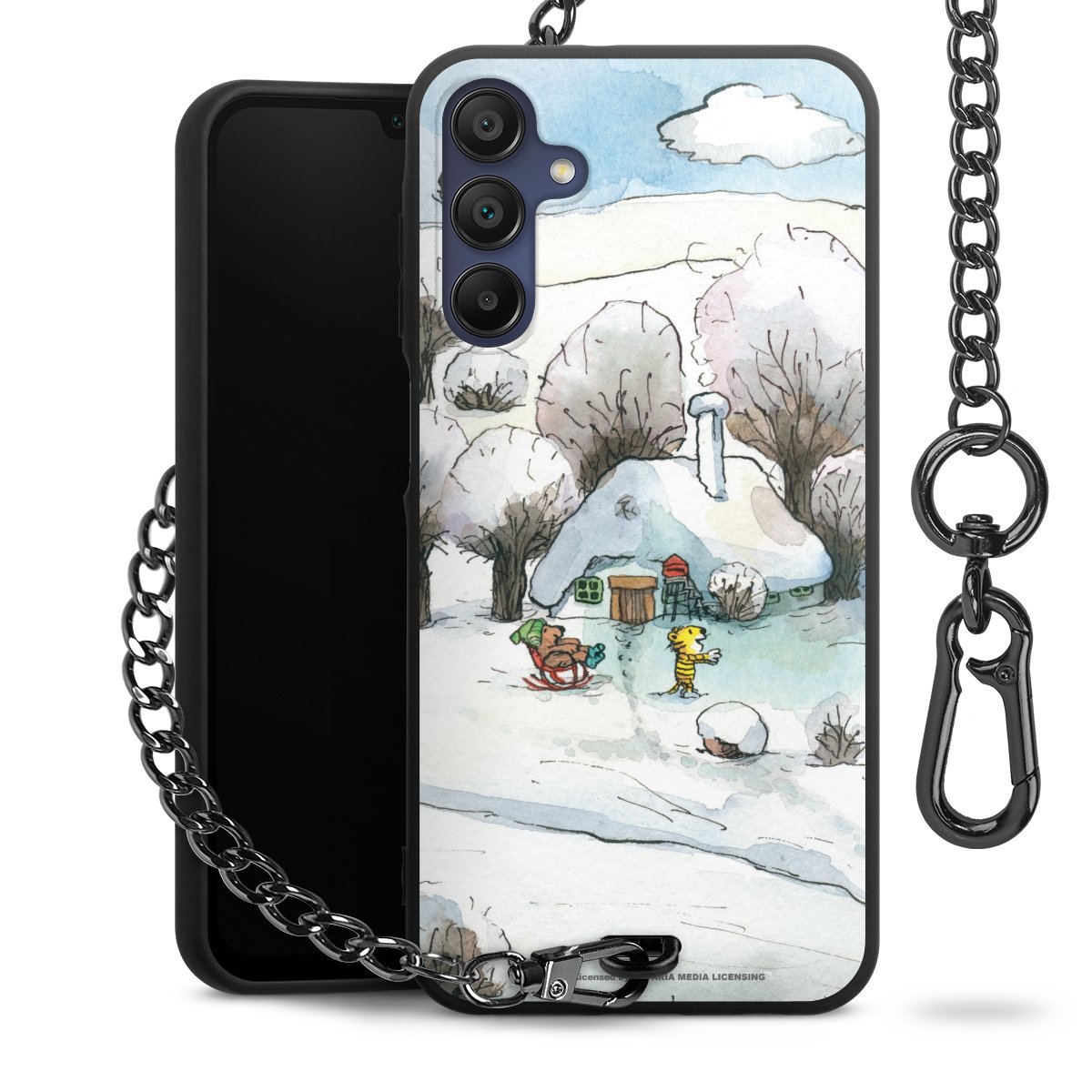 Die mattschwarze Silikon-Handyhülle besteht aus robustem TPU (thermoplastisches Polyurethan). Sie ist flexibel und schützt Dein Smartphone vor Stößen und Kratzern. Die Kette sowie der Karabinerhaken sind aus Metall in Gunmetal-Optik gefertigt. Für dieses Produkt kommen ausschließlich TÜV-geprüfte Materialien zum Einsatz.