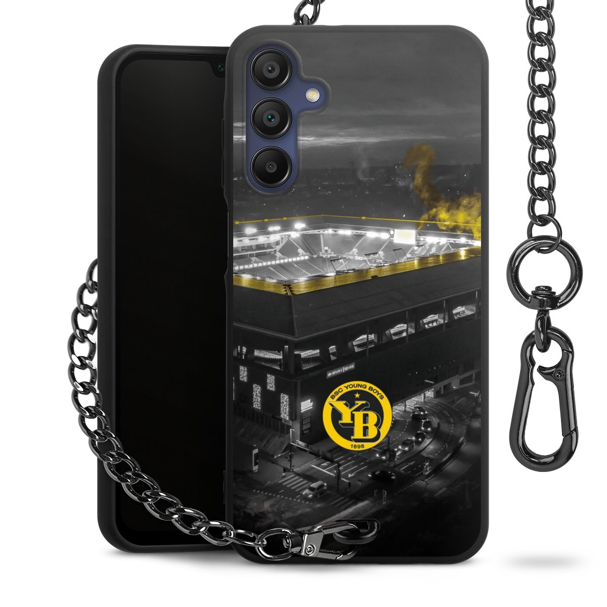 Die mattschwarze Silikon-Handyhülle besteht aus robustem TPU (thermoplastisches Polyurethan). Sie ist flexibel und schützt Dein Smartphone vor Stößen und Kratzern. Die Kette sowie der Karabinerhaken sind aus Metall in Gunmetal-Optik gefertigt. Für dieses Produkt kommen ausschließlich TÜV-geprüfte Materialien zum Einsatz.