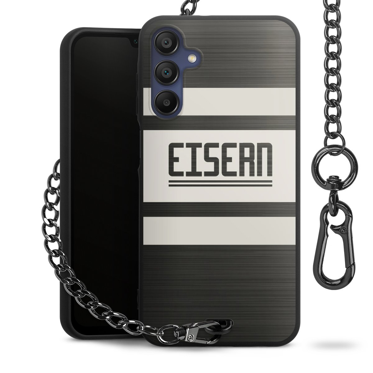 • Mattschwarze Handyhülle mit Metallkette