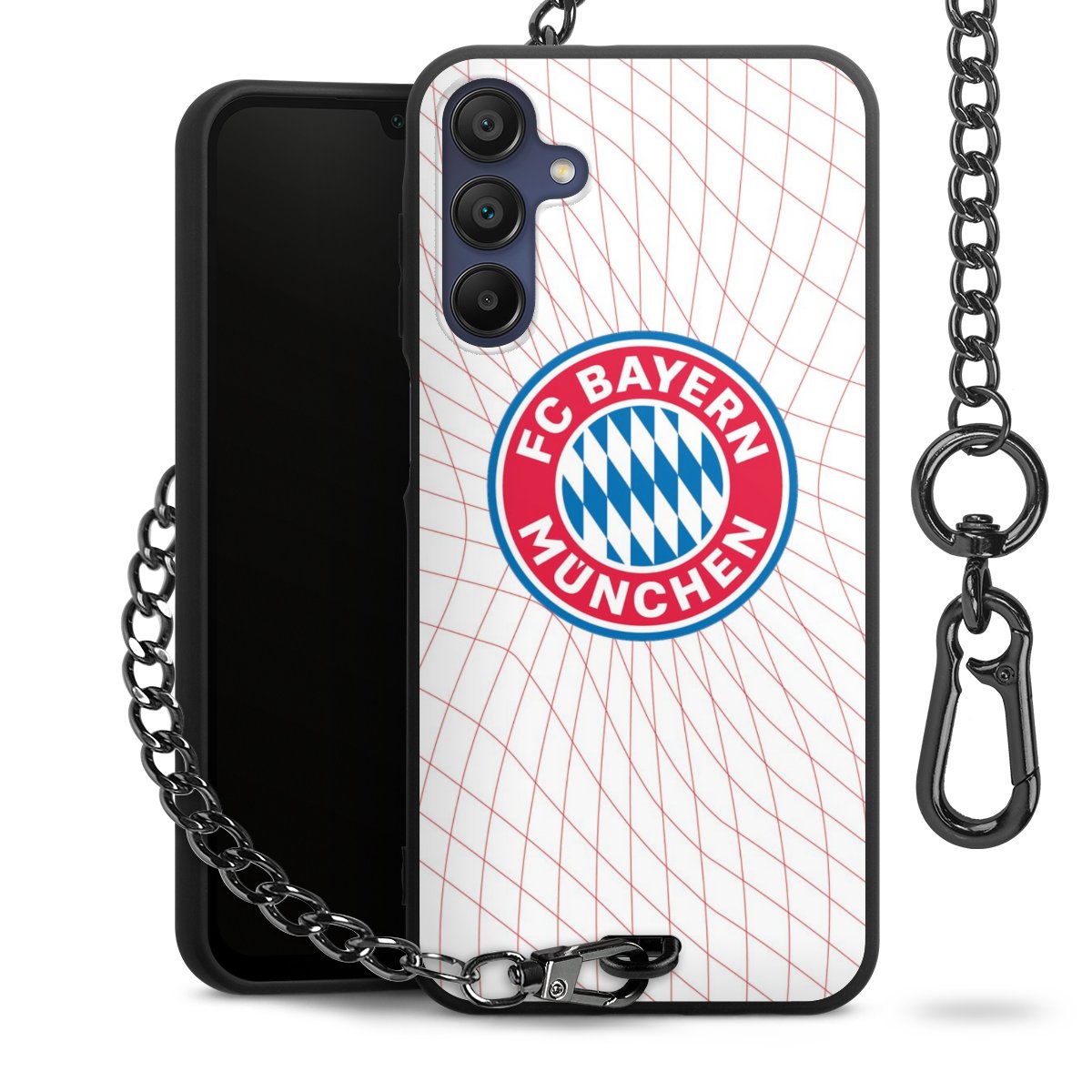 Die mattschwarze Silikon-Handyhülle besteht aus robustem TPU (thermoplastisches Polyurethan). Sie ist flexibel und schützt Dein Smartphone vor Stößen und Kratzern. Die Kette sowie der Karabinerhaken sind aus Metall in Gunmetal-Optik gefertigt. Für dieses Produkt kommen ausschließlich TÜV-geprüfte Materialien zum Einsatz.