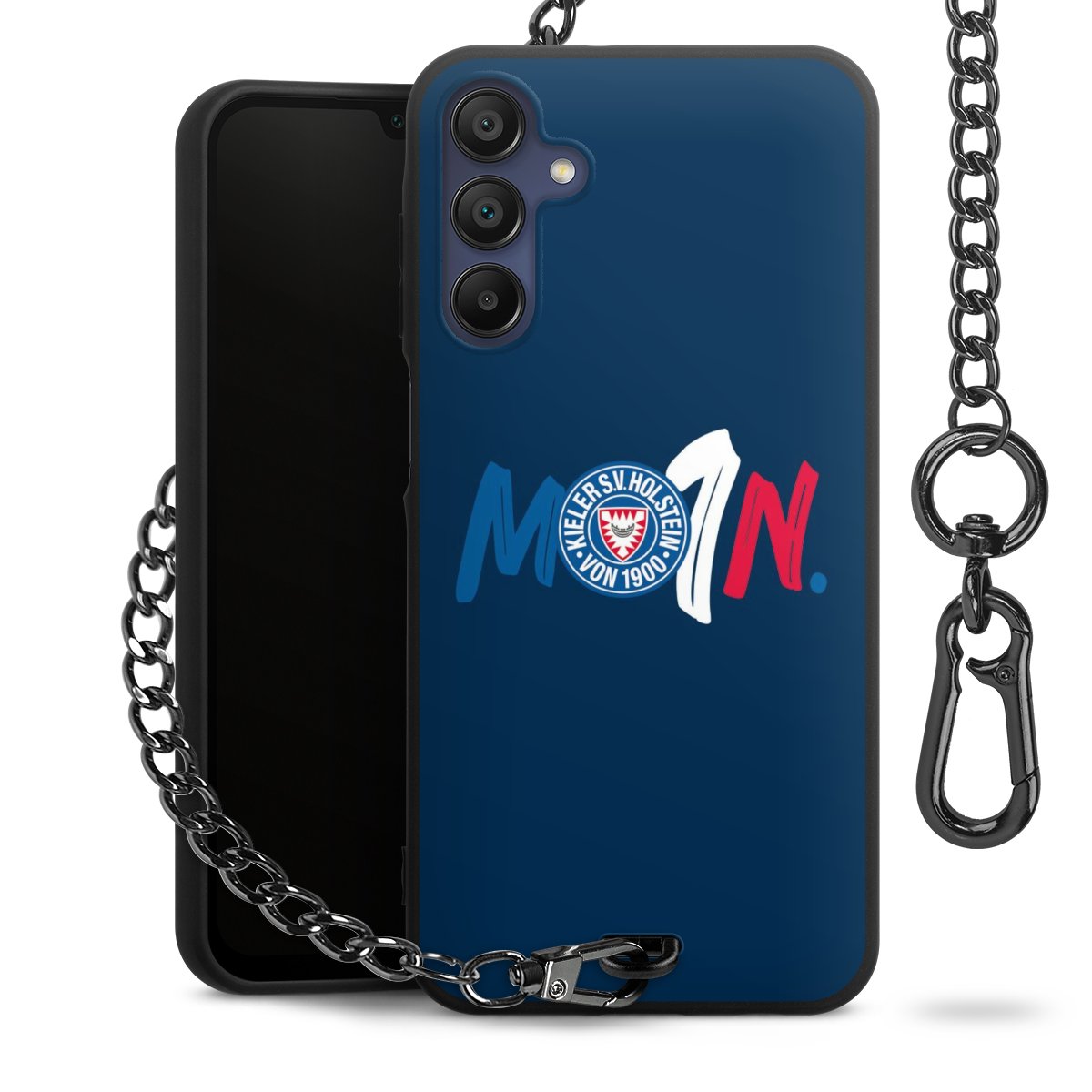 Die mattschwarze Silikon-Handyhülle besteht aus robustem TPU (thermoplastisches Polyurethan). Sie ist flexibel und schützt Dein Smartphone vor Stößen und Kratzern. Die Kette sowie der Karabinerhaken sind aus Metall in Gunmetal-Optik gefertigt. Für dieses Produkt kommen ausschließlich TÜV-geprüfte Materialien zum Einsatz.