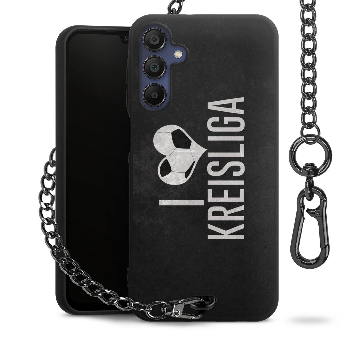 • Mattschwarze Handyhülle mit Metallkette