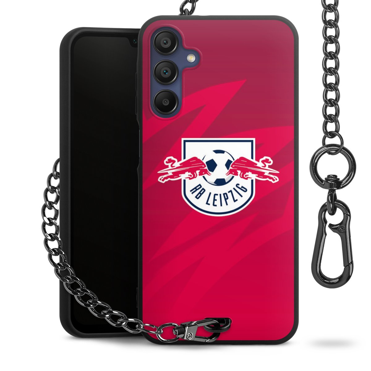 • Mattschwarze Handyhülle mit Metallkette
