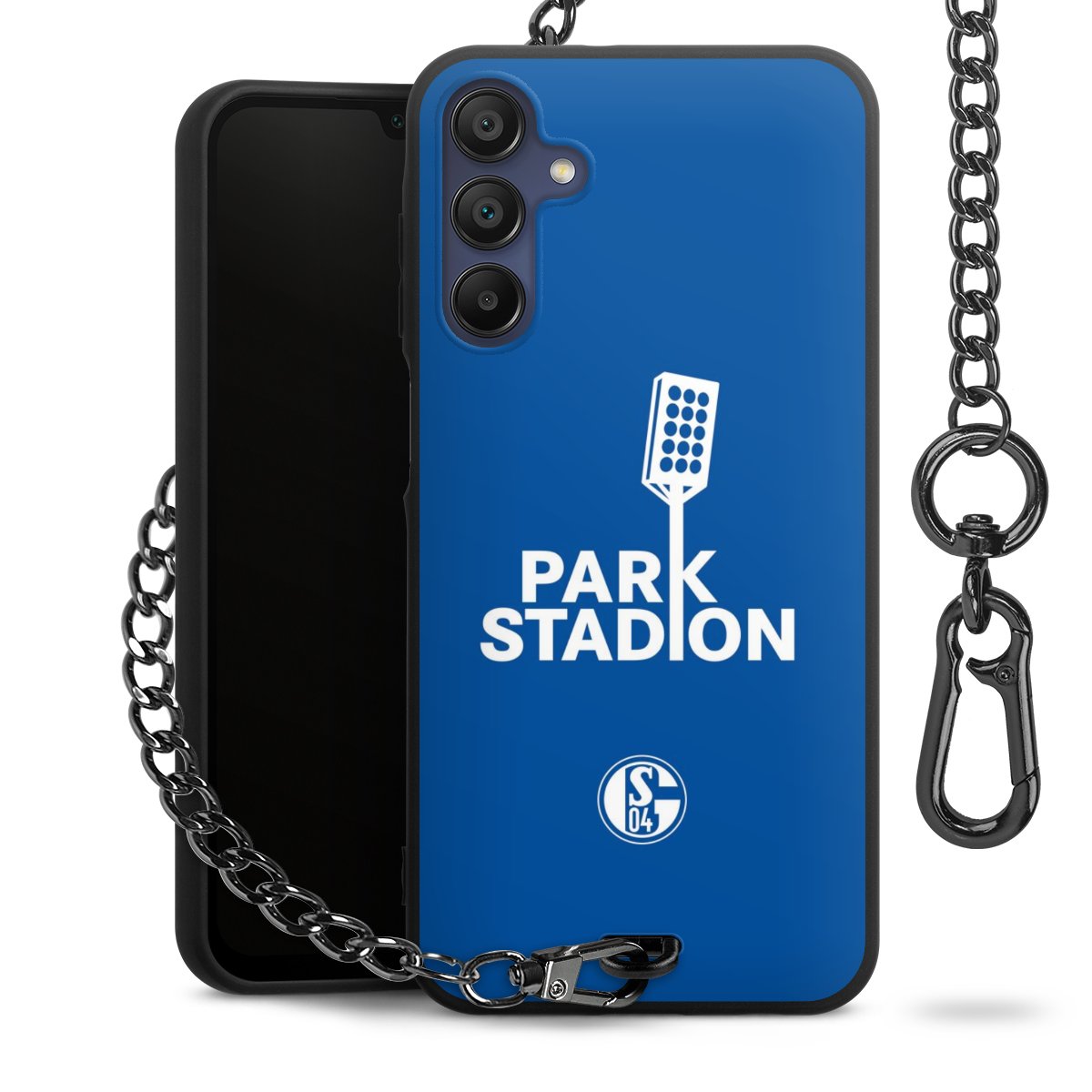 • Mattschwarze Handyhülle mit Metallkette