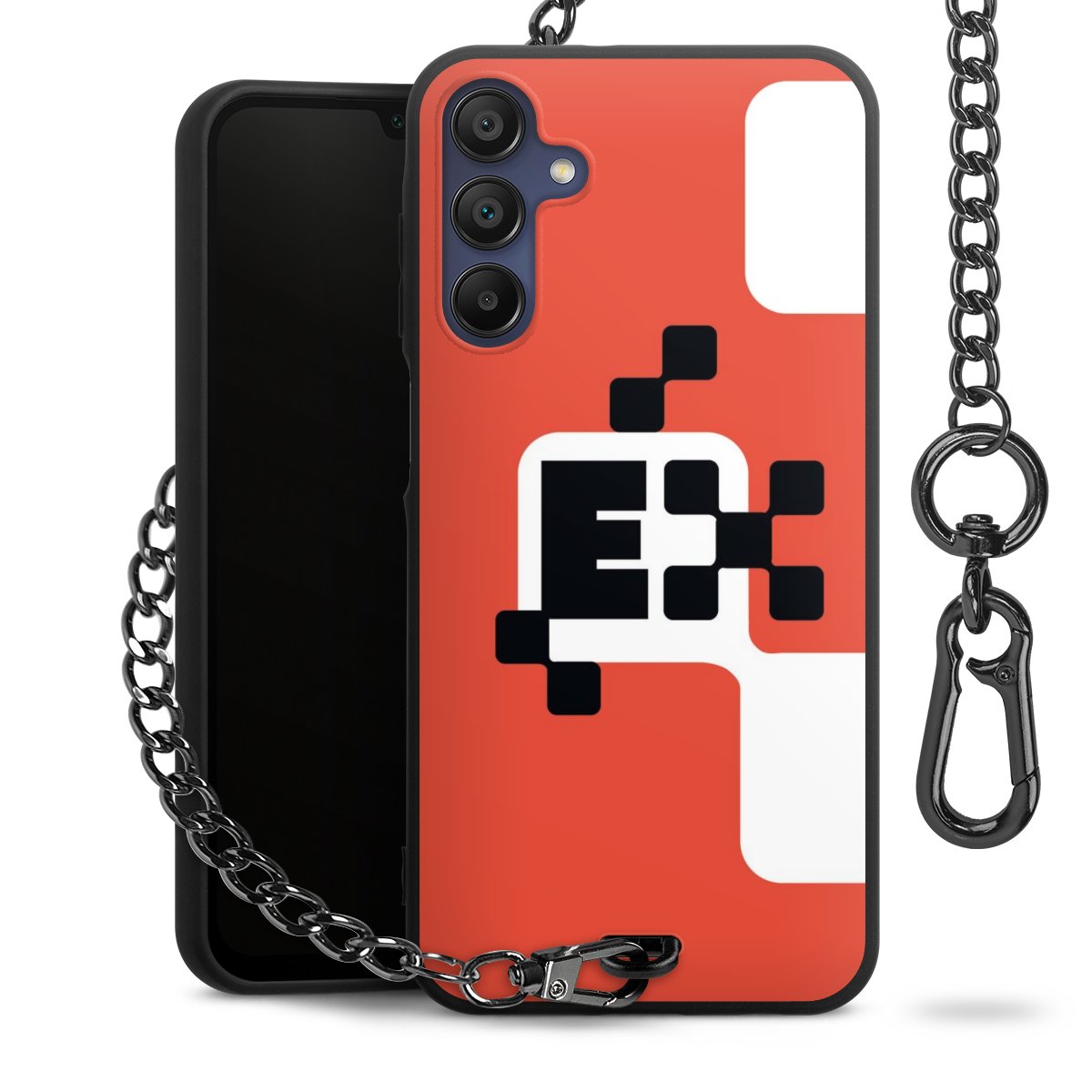 • Mattschwarze Handyhülle mit Metallkette