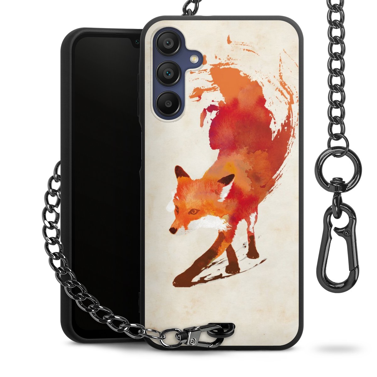 • Mattschwarze Handyhülle mit Metallkette
