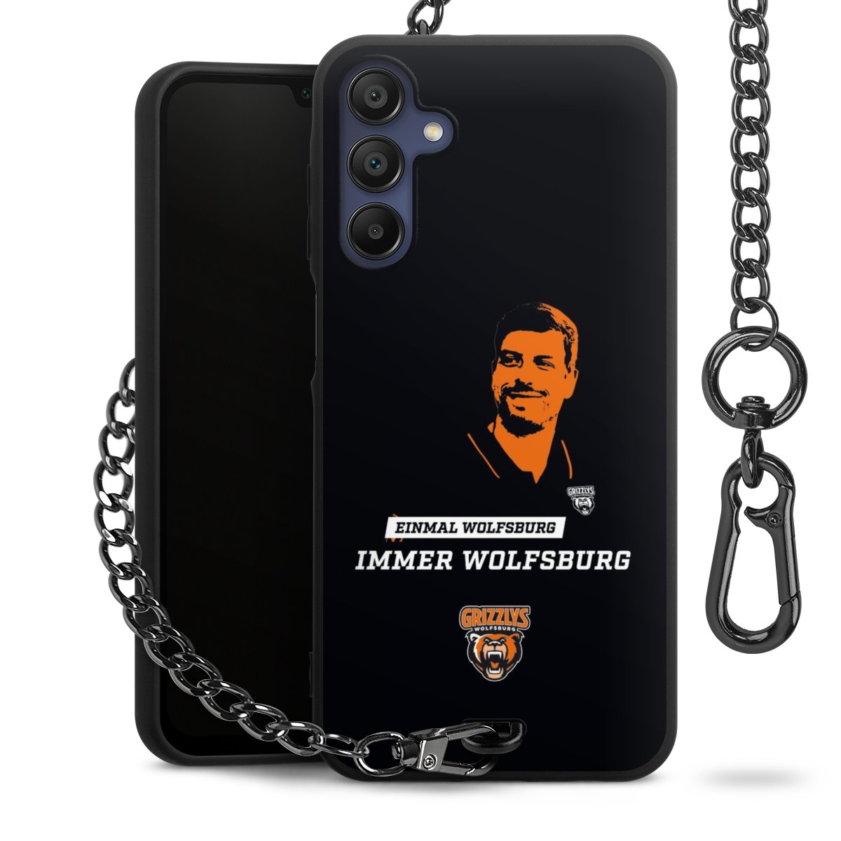 - Mattschwarze Handyhülle mit Metallkette