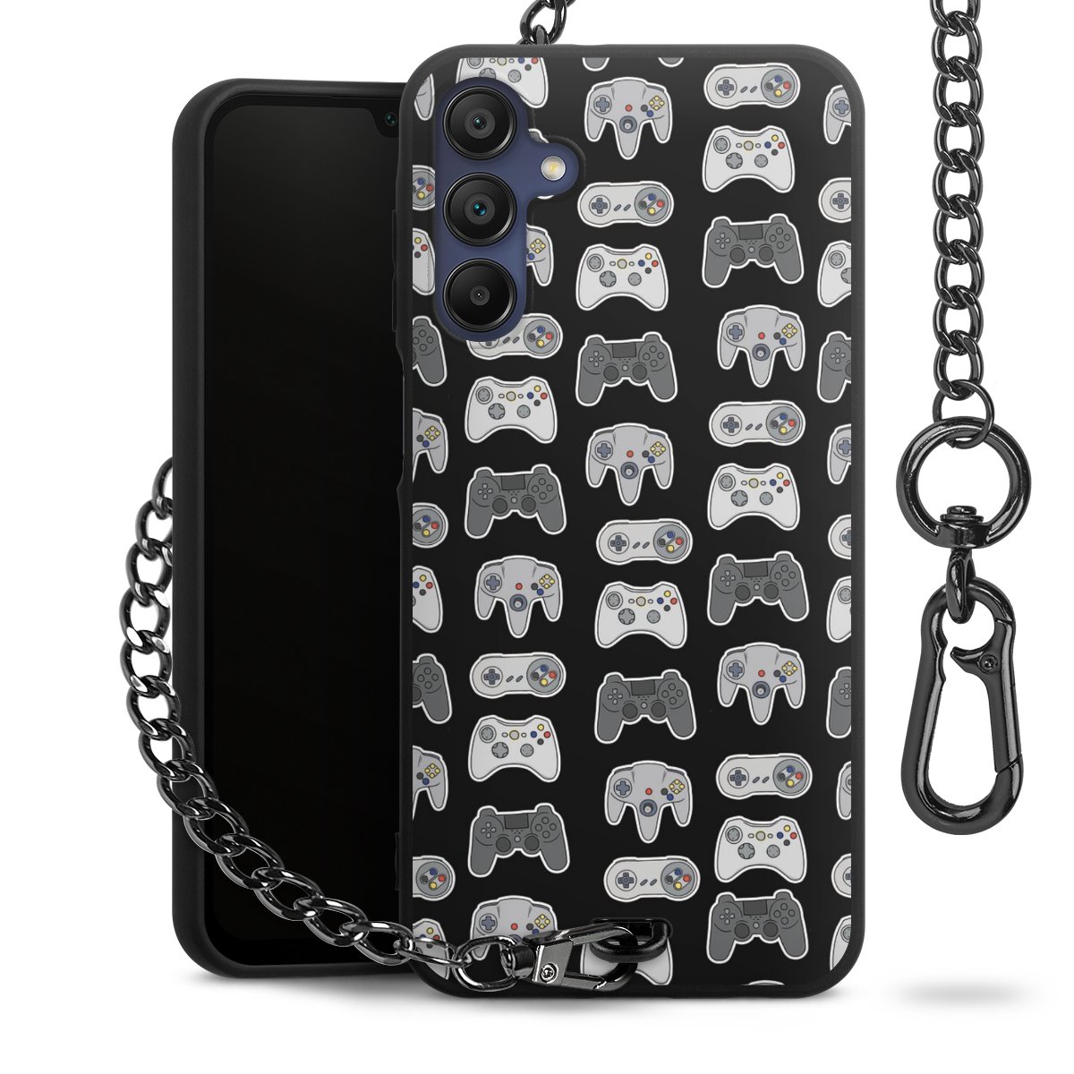 • Mattschwarze Handyhülle mit Metallkette