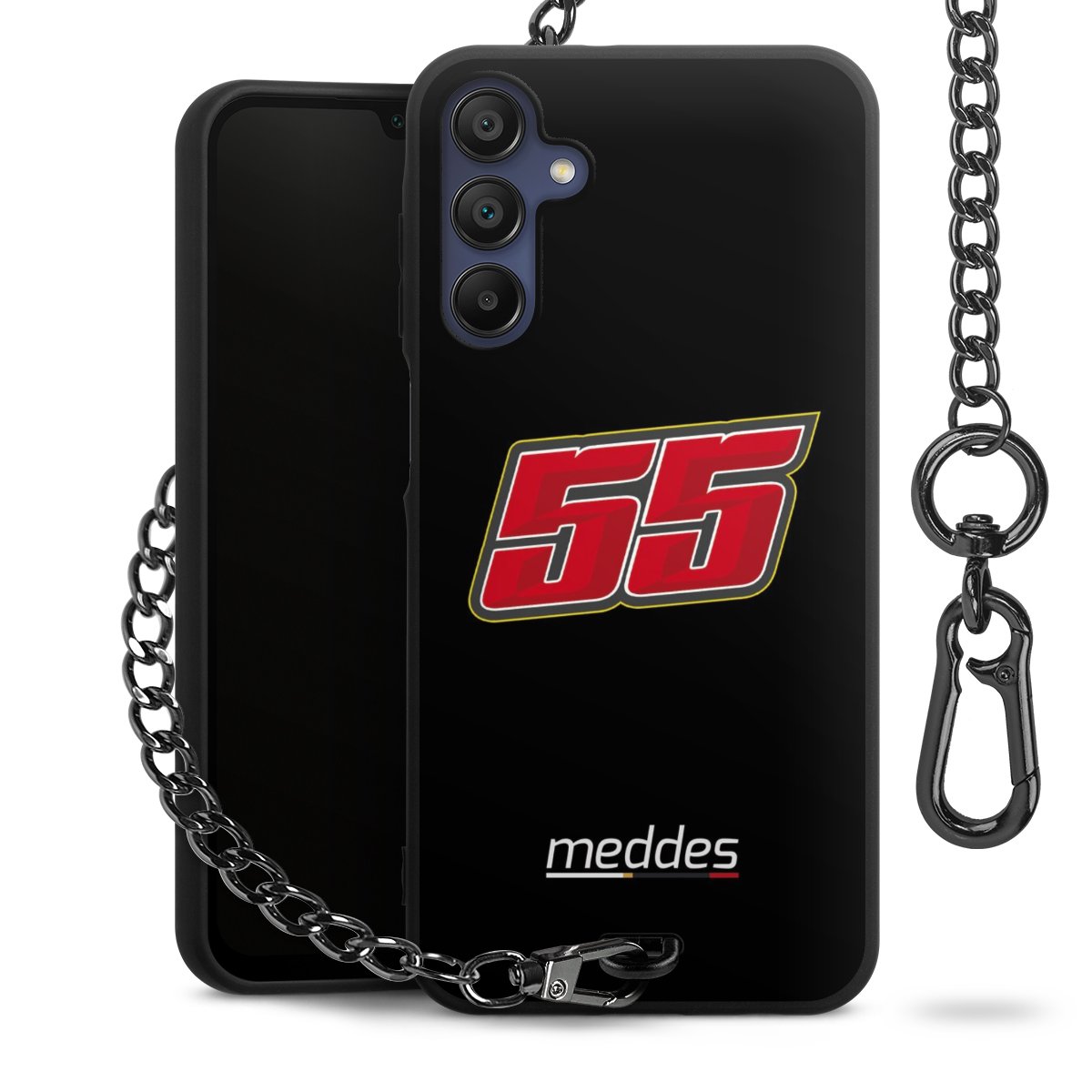 • Mattschwarze Handyhülle mit Metallkette