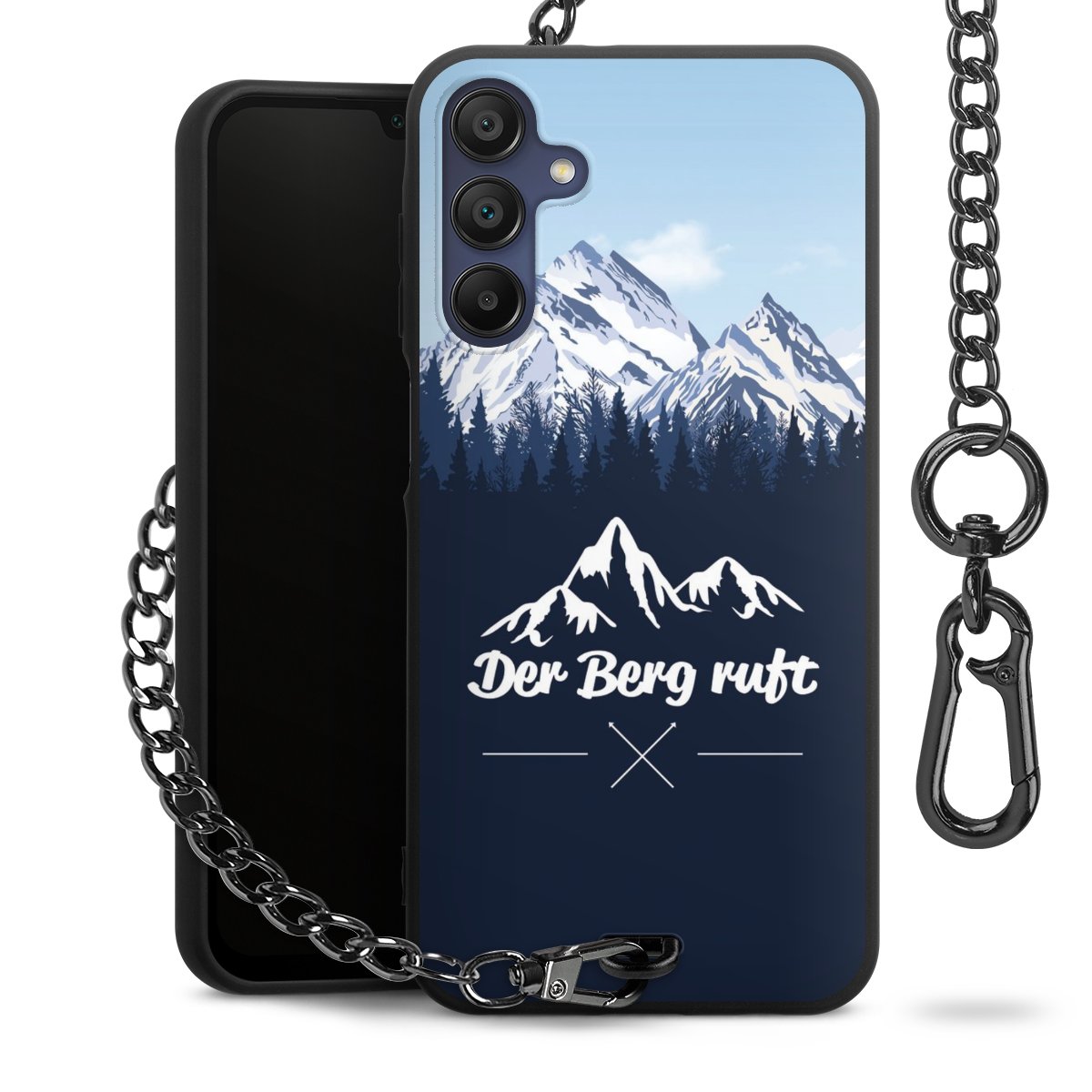 • Mattschwarze Handyhülle mit Metallkette