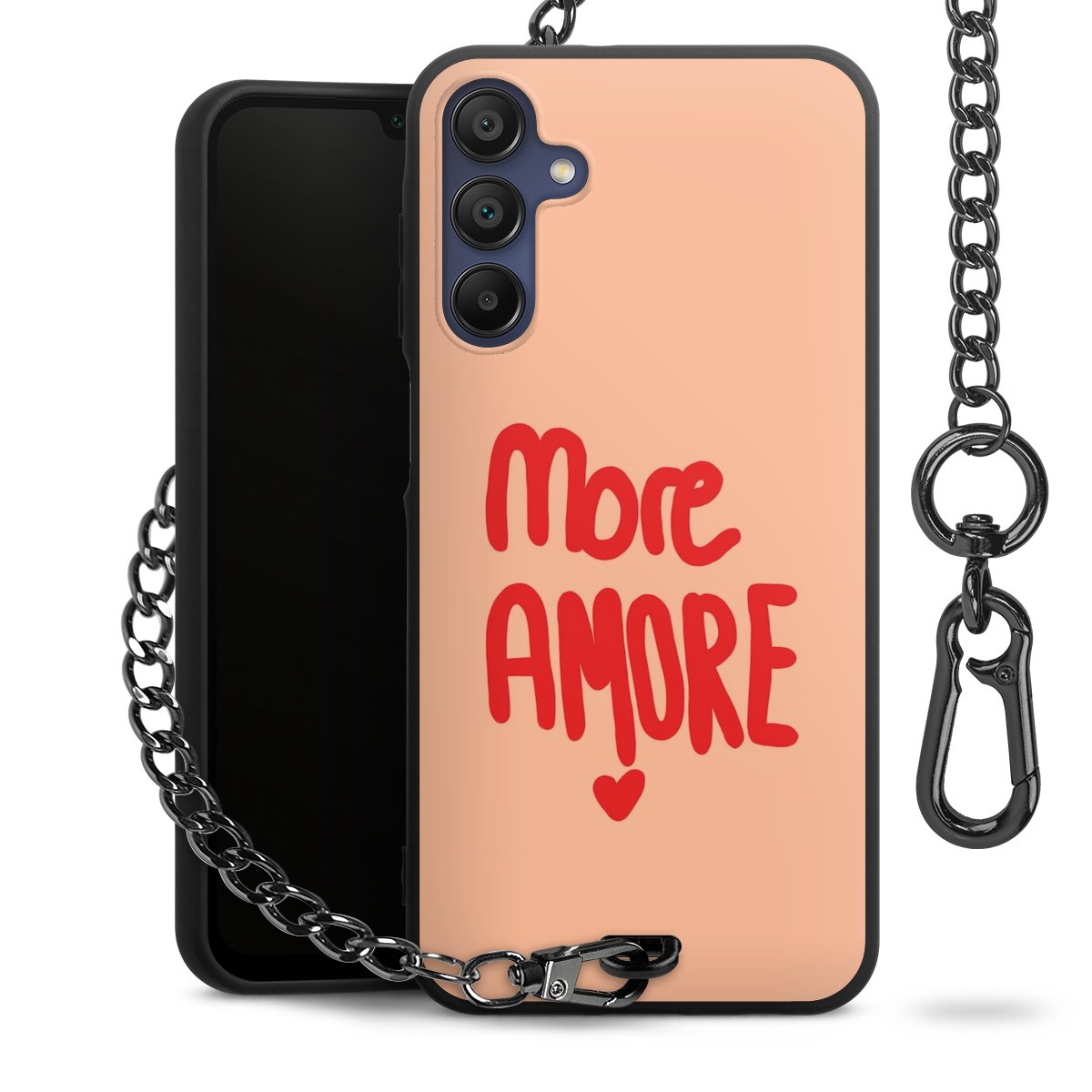 • Mattschwarze Handyhülle mit Metallkette