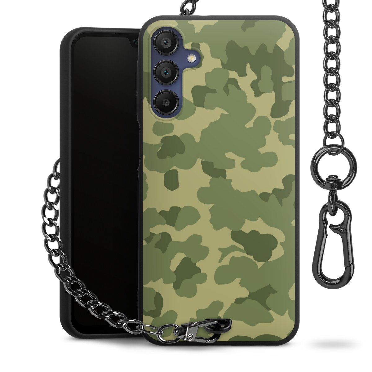 Die mattschwarze Silikon-Handyhülle besteht aus robustem TPU (thermoplastisches Polyurethan). Sie ist flexibel und schützt Dein Smartphone vor Stößen und Kratzern. Die Kette sowie der Karabinerhaken sind aus Metall in Gunmetal-Optik gefertigt. Für dieses Produkt kommen ausschließlich TÜV-geprüfte Materialien zum Einsatz.