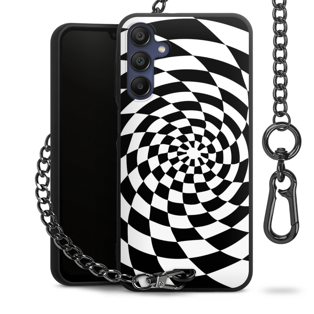 • Mattschwarze Handyhülle mit Metallkette