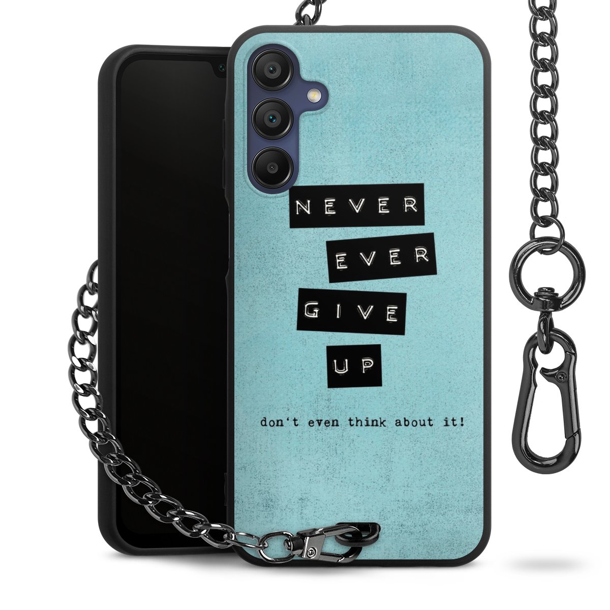 • Mattschwarze Handyhülle mit Metallkette
