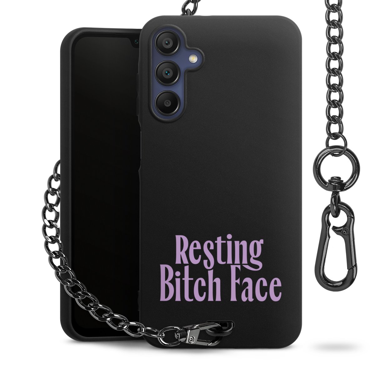 - Mattschwarze Handyhülle mit Metallkette