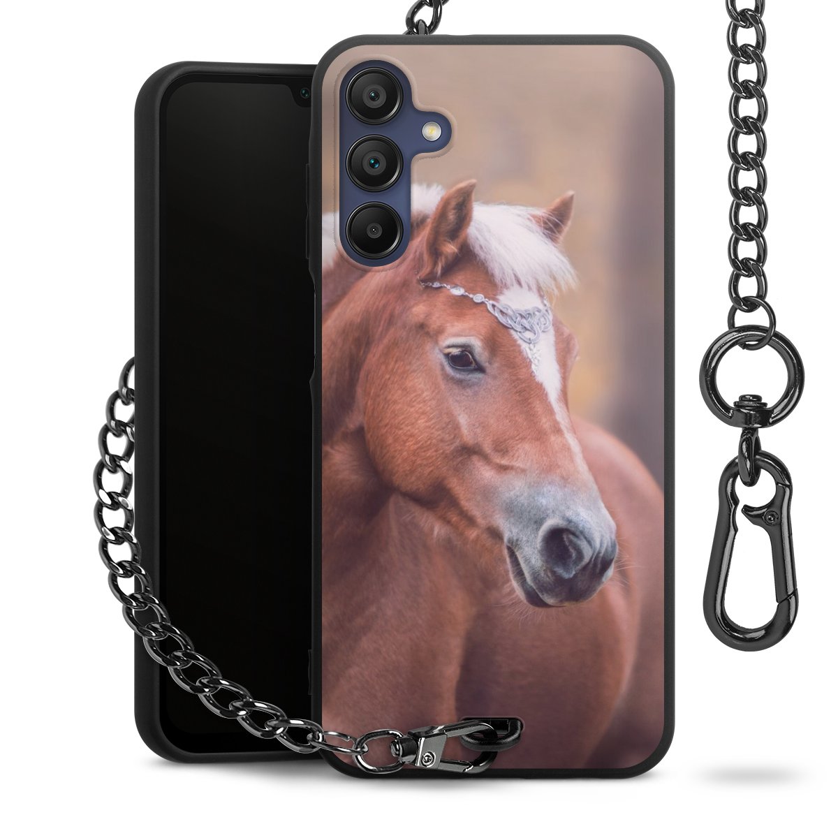 • Mattschwarze Handyhülle mit Metallkette