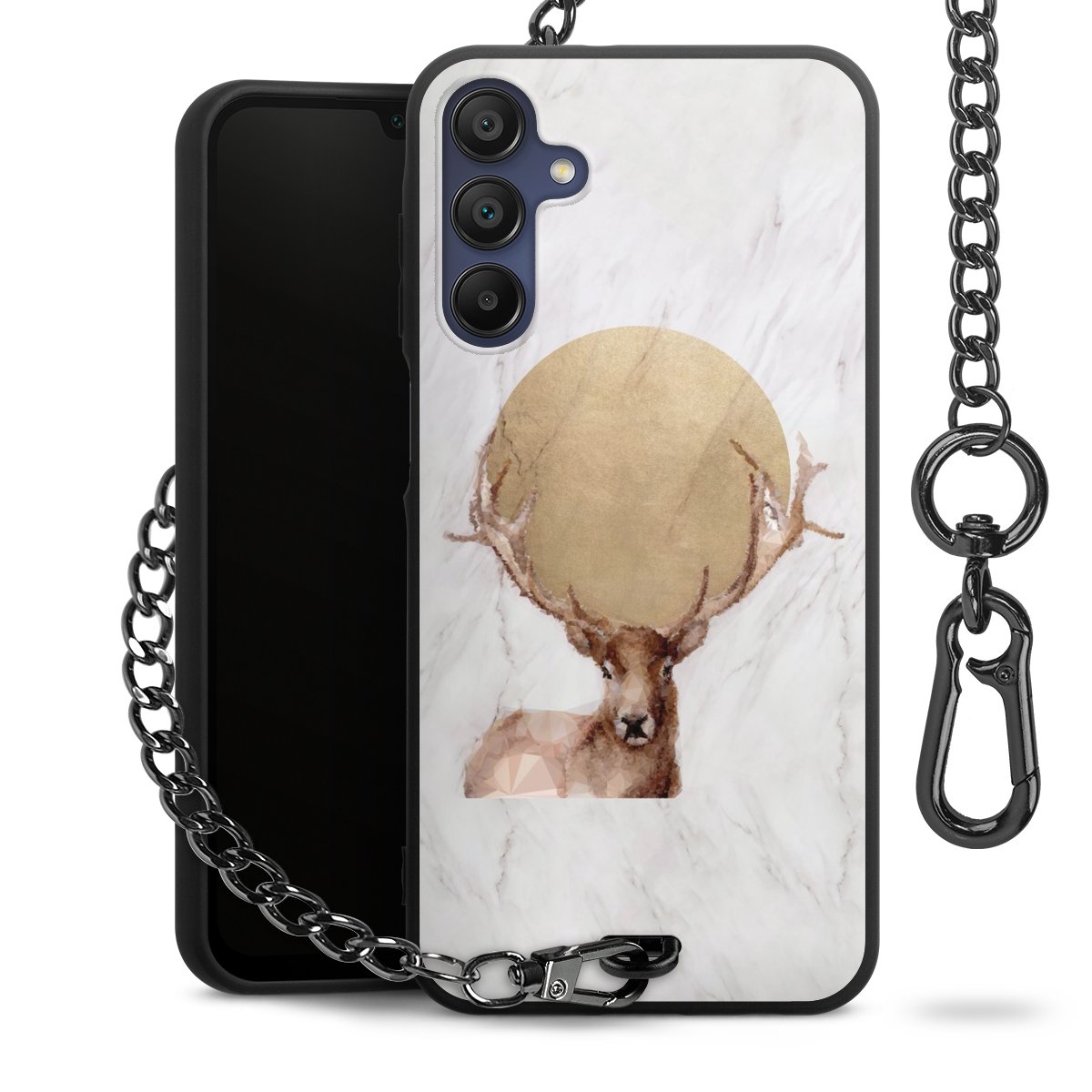 • Mattschwarze Handyhülle mit Metallkette