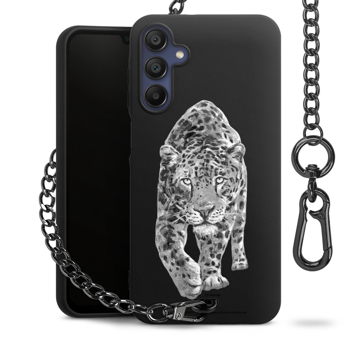 Die mattschwarze Silikon-Handyhülle besteht aus robustem TPU (thermoplastisches Polyurethan). Sie ist flexibel und schützt Dein Smartphone vor Stößen und Kratzern. Die Kette sowie der Karabinerhaken sind aus Metall in Gunmetal-Optik gefertigt. Für dieses Produkt kommen ausschließlich TÜV-geprüfte Materialien zum Einsatz.