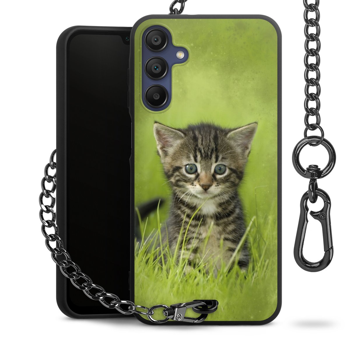 - Mattschwarze Handyhülle mit Metallkette