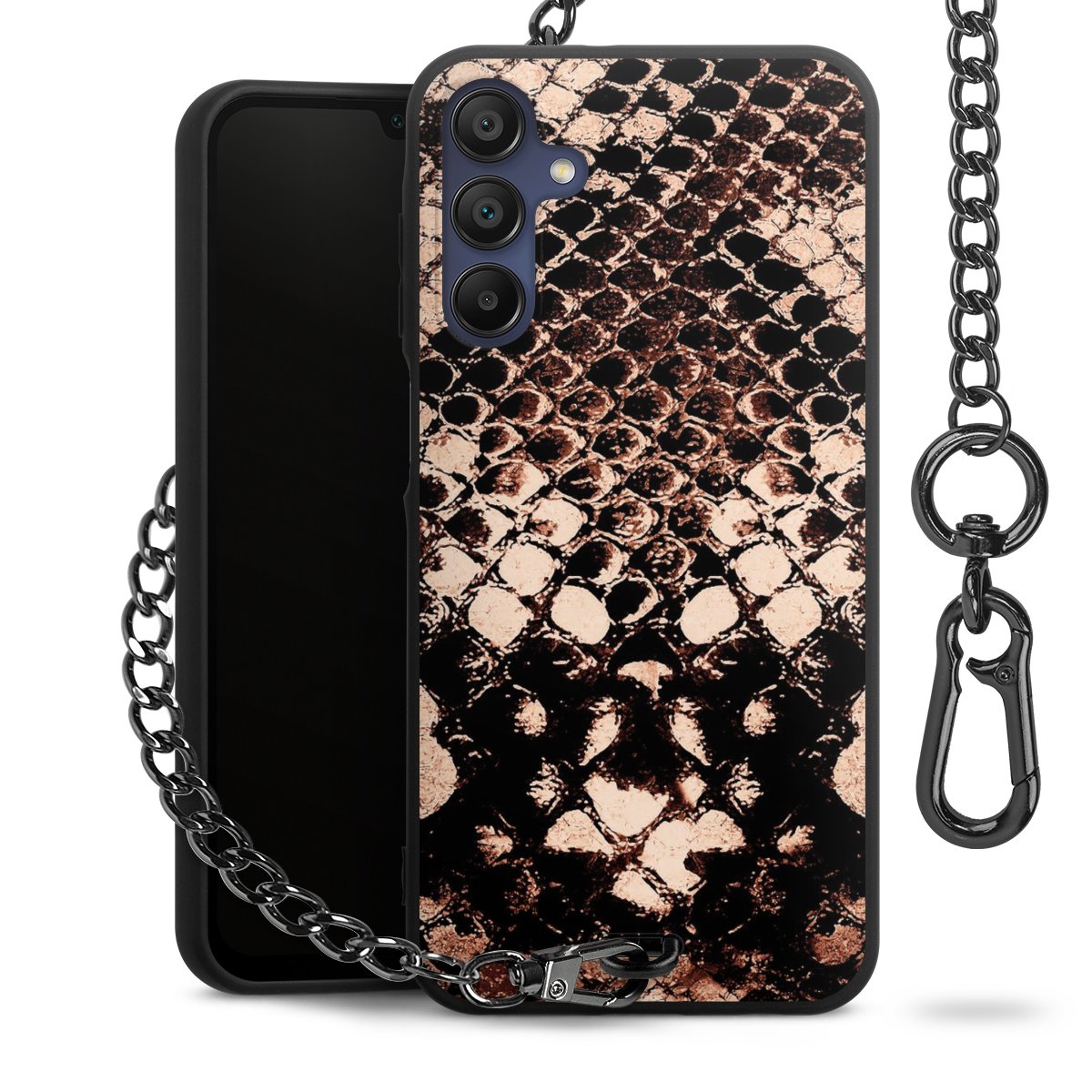 • Mattschwarze Handyhülle mit Metallkette