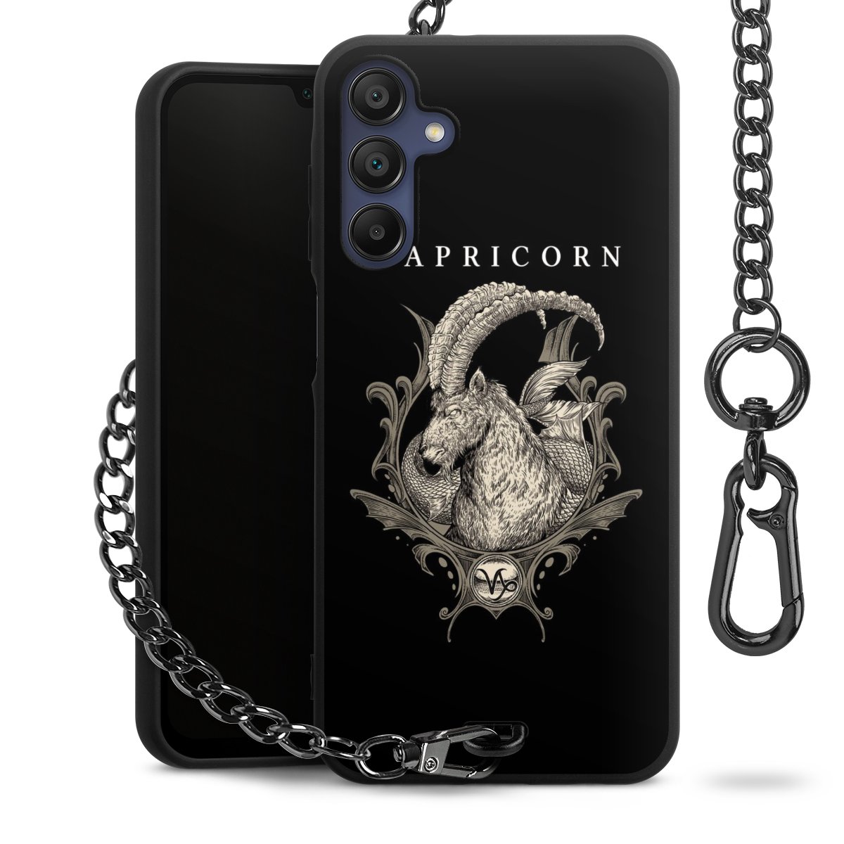 Die mattschwarze Silikon-Handyhülle besteht aus robustem TPU (thermoplastisches Polyurethan). Sie ist flexibel und schützt Dein Smartphone vor Stößen und Kratzern. Die Kette sowie der Karabinerhaken sind aus Metall in Gunmetal-Optik gefertigt. Für dieses Produkt kommen ausschließlich TÜV-geprüfte Materialien zum Einsatz.