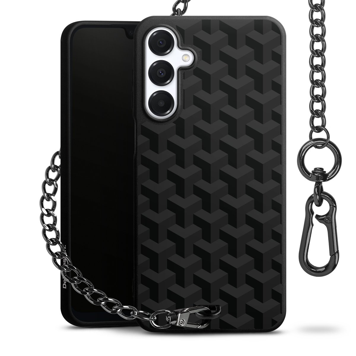 - Mattschwarze Handyhülle mit Metallkette