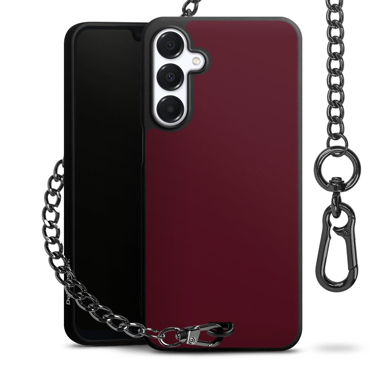 - Mattschwarze Handyhülle mit Metallkette