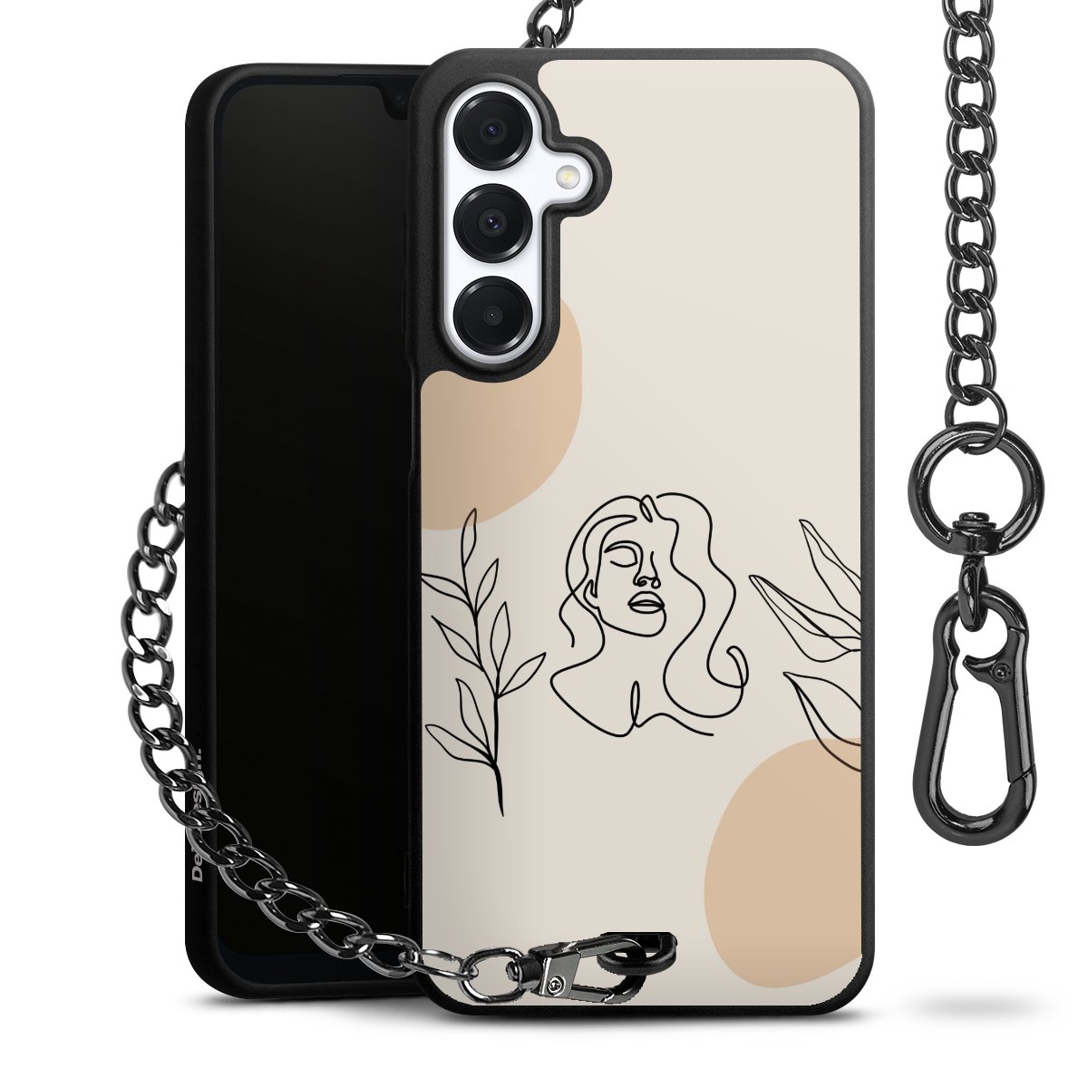 - Mattschwarze Handyhülle mit Metallkette