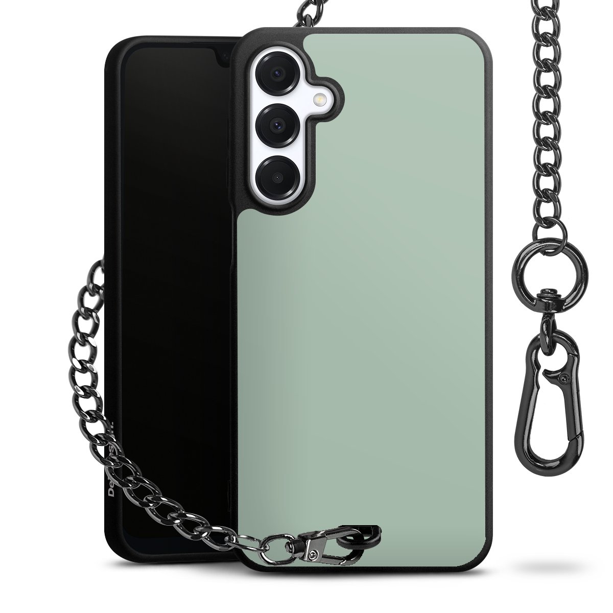 - Mattschwarze Handyhülle mit Metallkette