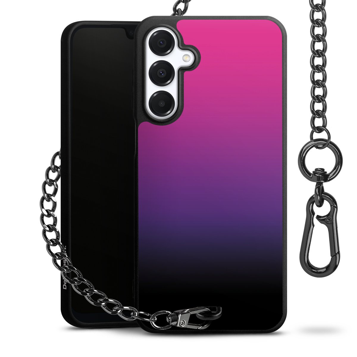 - Mattschwarze Handyhülle mit Metallkette