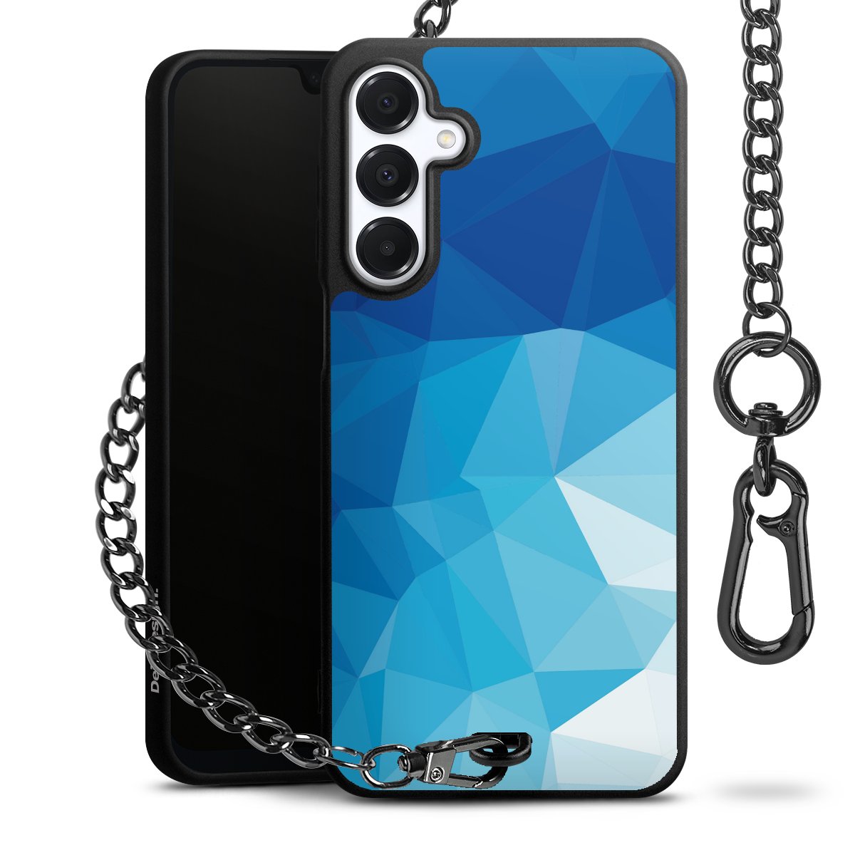 - Mattschwarze Handyhülle mit Metallkette