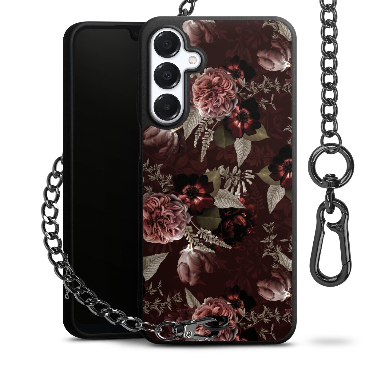• Mattschwarze Handyhülle mit Metallkette