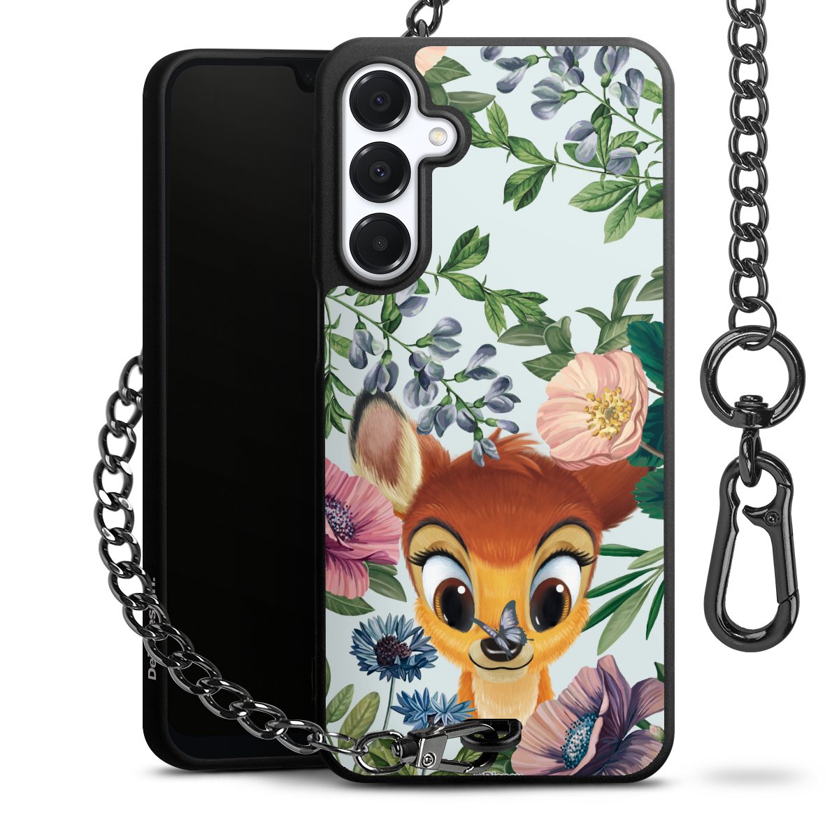 • Mattschwarze Handyhülle mit Metallkette
