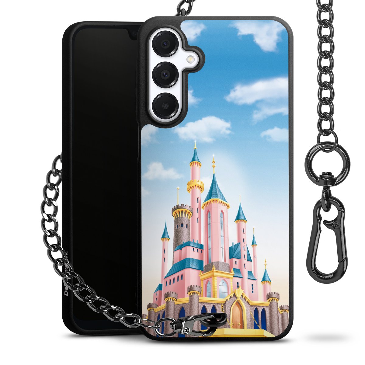 • Mattschwarze Handyhülle mit Metallkette