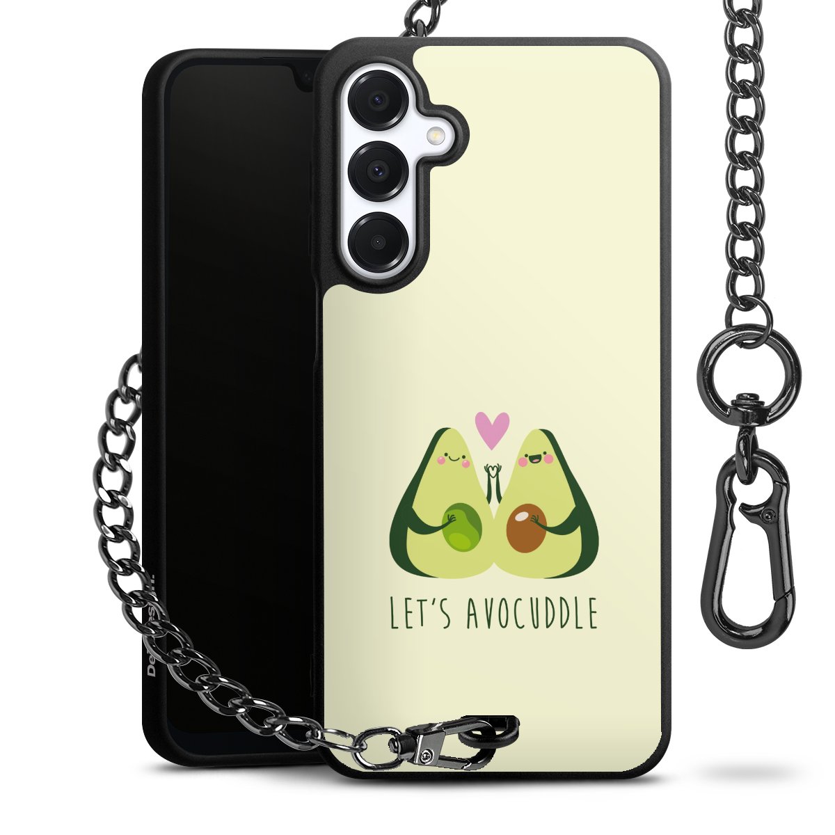 Die mattschwarze Silikon-Handyhülle besteht aus robustem TPU (thermoplastisches Polyurethan). Sie ist flexibel und schützt Dein Smartphone vor Stößen und Kratzern. Die Kette sowie der Karabinerhaken sind aus Metall in Gunmetal-Optik gefertigt. Für dieses Produkt kommen ausschließlich TÜV-geprüfte Materialien zum Einsatz.