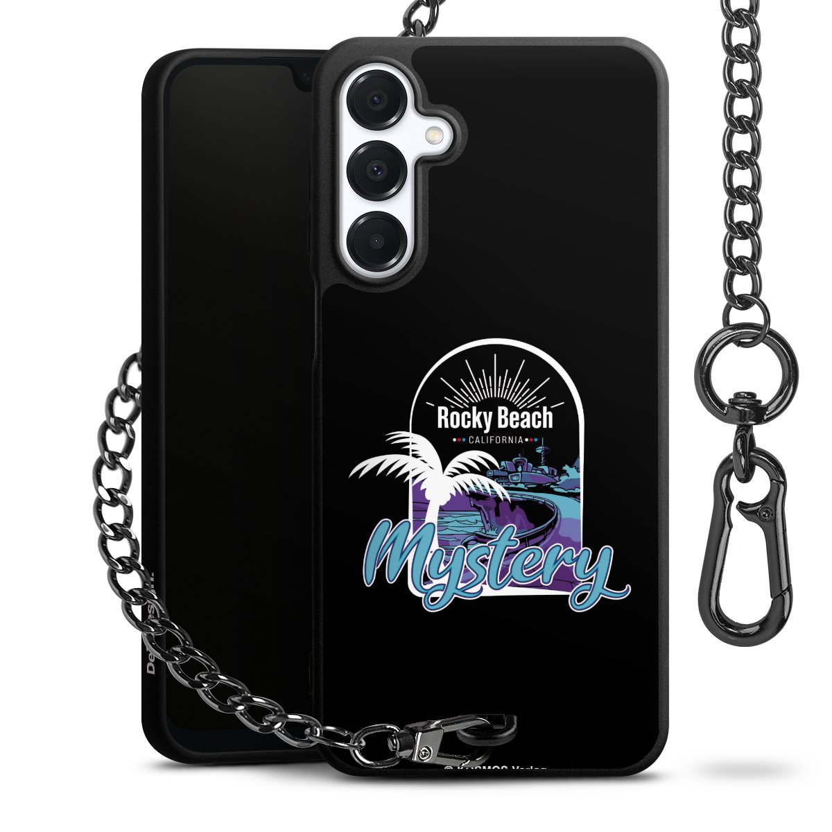 Die mattschwarze Silikon-Handyhülle besteht aus robustem TPU (thermoplastisches Polyurethan). Sie ist flexibel und schützt Dein Smartphone vor Stößen und Kratzern. Die Kette sowie der Karabinerhaken sind aus Metall in Gunmetal-Optik gefertigt. Für dieses Produkt kommen ausschließlich TÜV-geprüfte Materialien zum Einsatz.