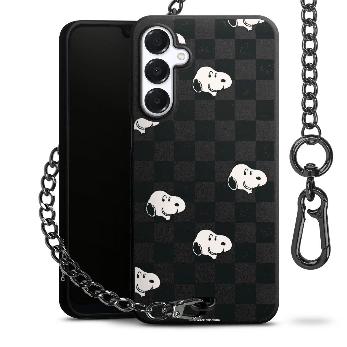 Die mattschwarze Silikon-Handyhülle besteht aus robustem TPU (thermoplastisches Polyurethan). Sie ist flexibel und schützt Dein Smartphone vor Stößen und Kratzern. Die Kette sowie der Karabinerhaken sind aus Metall in Gunmetal-Optik gefertigt. Für dieses Produkt kommen ausschließlich TÜV-geprüfte Materialien zum Einsatz.