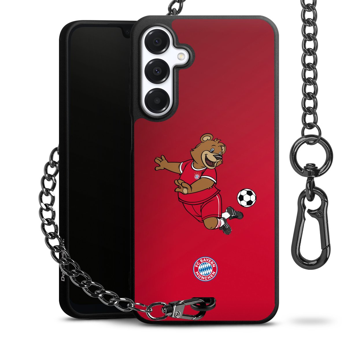 Die mattschwarze Silikon-Handyhülle besteht aus robustem TPU (thermoplastisches Polyurethan). Sie ist flexibel und schützt Dein Smartphone vor Stößen und Kratzern. Die Kette sowie der Karabinerhaken sind aus Metall in Gunmetal-Optik gefertigt. Für dieses Produkt kommen ausschließlich TÜV-geprüfte Materialien zum Einsatz.