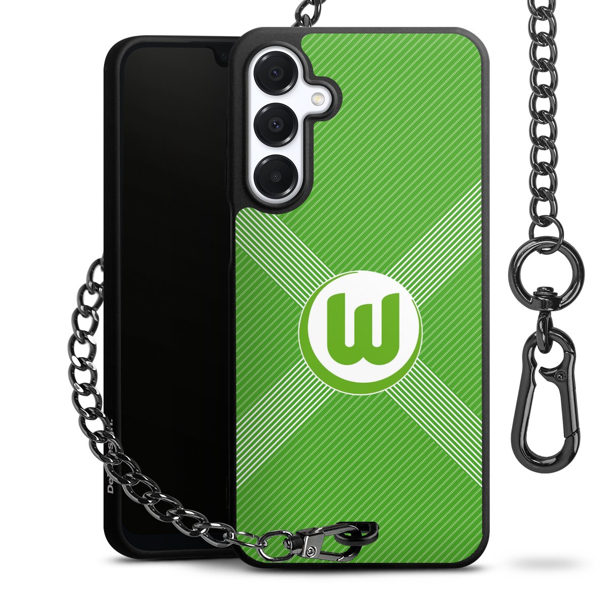Die mattschwarze Silikon-Handyhülle besteht aus robustem TPU (thermoplastisches Polyurethan). Sie ist flexibel und schützt Dein Smartphone vor Stößen und Kratzern. Die Kette sowie der Karabinerhaken sind aus Metall in Gunmetal-Optik gefertigt. Für dieses Produkt kommen ausschließlich TÜV-geprüfte Materialien zum Einsatz.