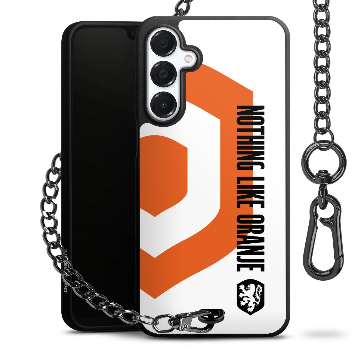 Die mattschwarze Silikon-Handyhülle besteht aus robustem TPU (thermoplastisches Polyurethan). Sie ist flexibel und schützt Dein Smartphone vor Stößen und Kratzern. Die Kette sowie der Karabinerhaken sind aus Metall in Gunmetal-Optik gefertigt. Für dieses Produkt kommen ausschließlich TÜV-geprüfte Materialien zum Einsatz.