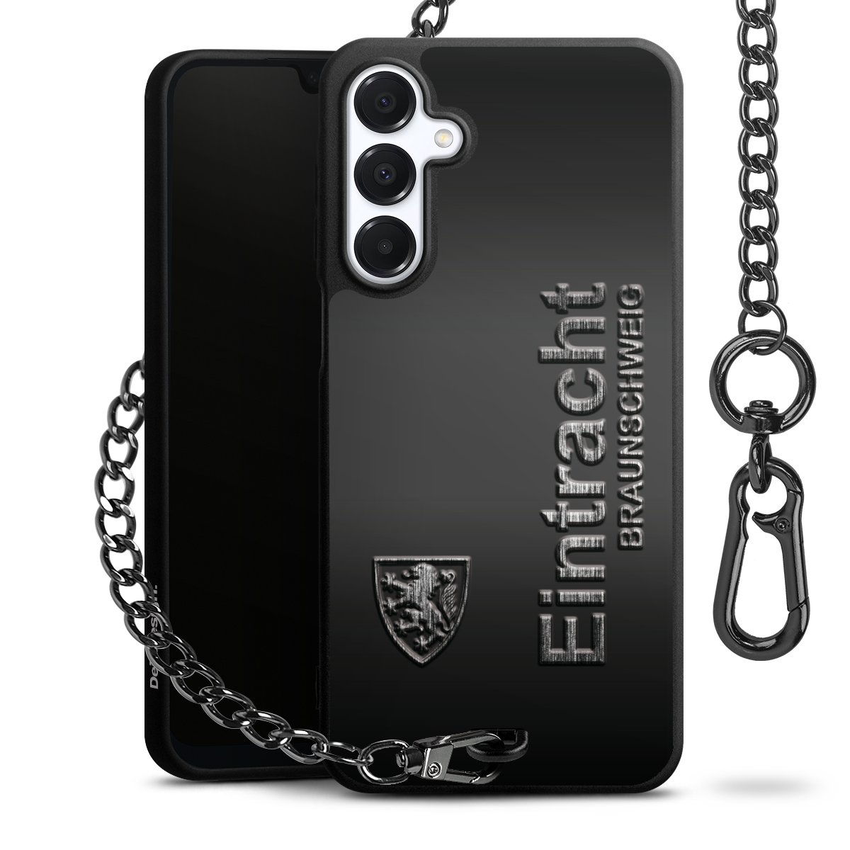 • Mattschwarze Handyhülle mit Metallkette
