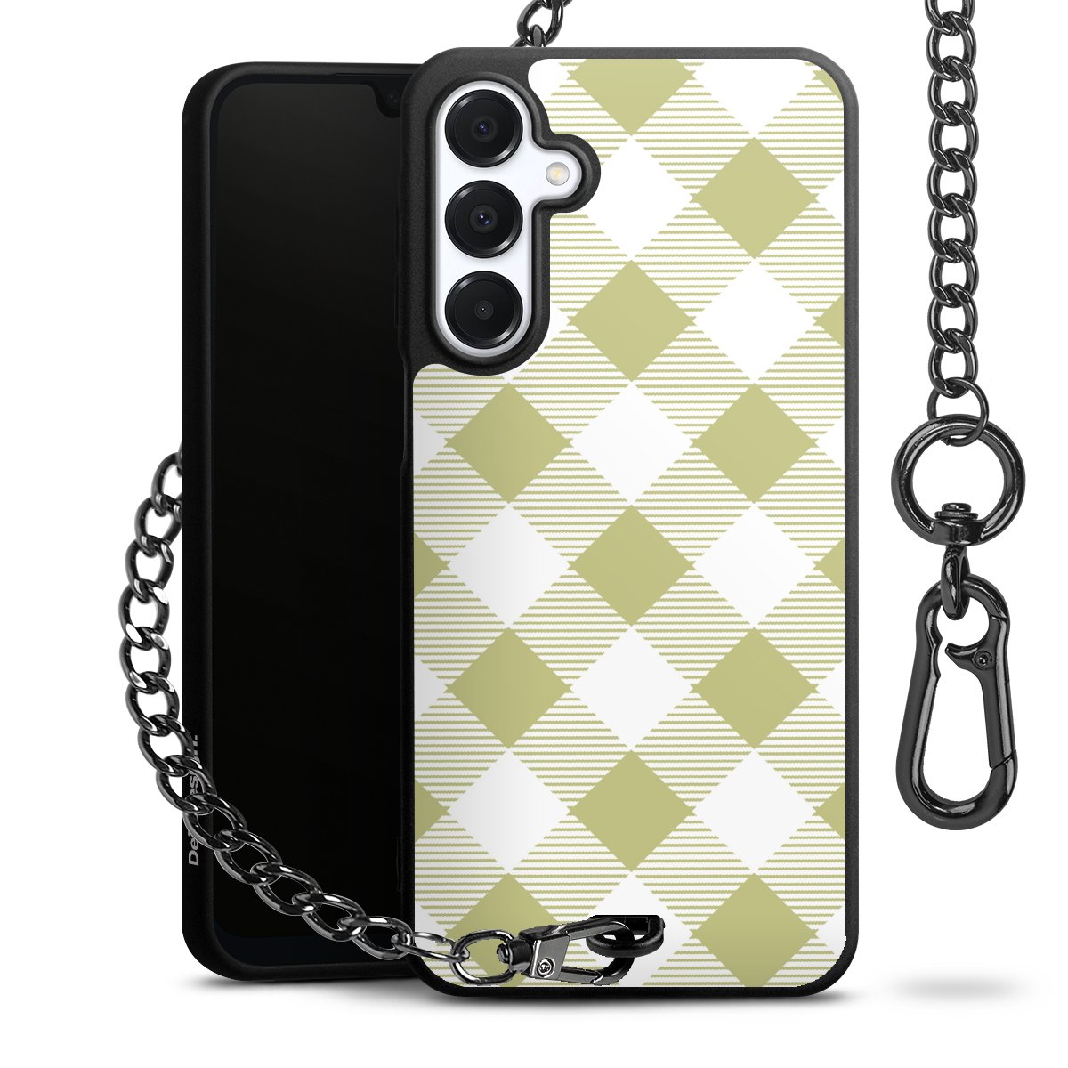 Die mattschwarze Silikon-Handyhülle besteht aus robustem TPU (thermoplastisches Polyurethan). Sie ist flexibel und schützt Dein Smartphone vor Stößen und Kratzern. Die Kette sowie der Karabinerhaken sind aus Metall in Gunmetal-Optik gefertigt. Für dieses Produkt kommen ausschließlich TÜV-geprüfte Materialien zum Einsatz.