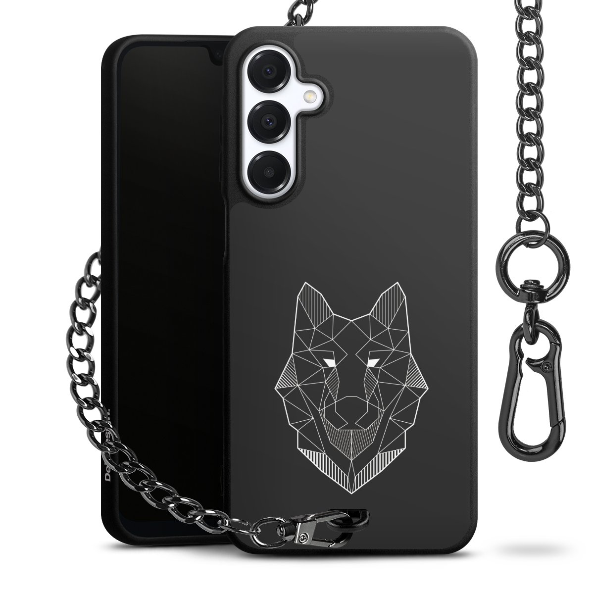 - Mattschwarze Handyhülle mit Metallkette