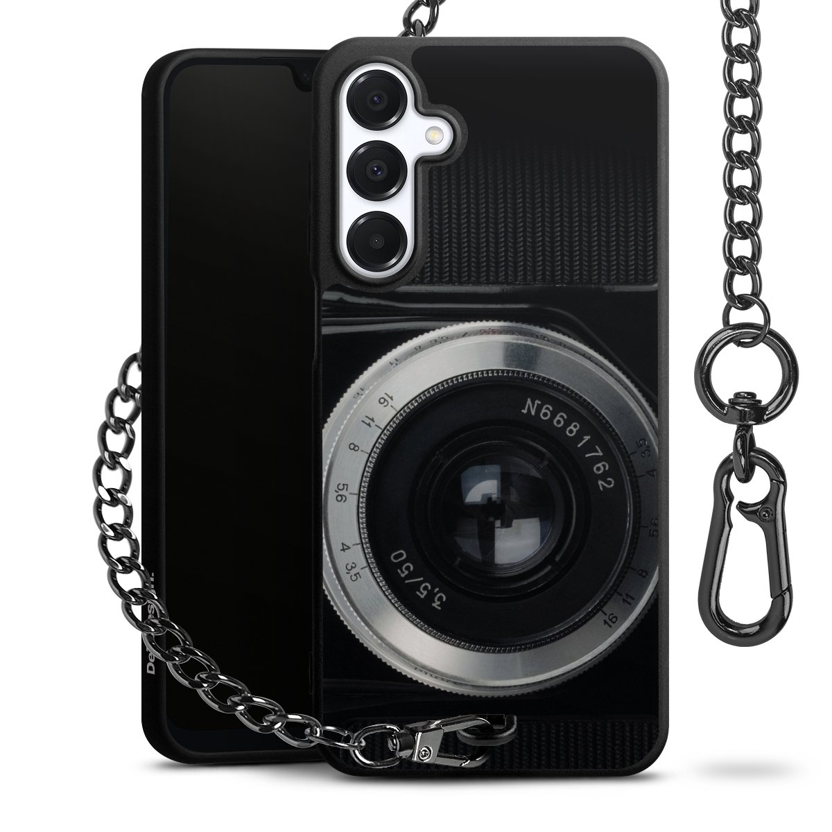 Die mattschwarze Silikon-Handyhülle besteht aus robustem TPU (thermoplastisches Polyurethan). Sie ist flexibel und schützt Dein Smartphone vor Stößen und Kratzern. Die Kette sowie der Karabinerhaken sind aus Metall in Gunmetal-Optik gefertigt. Für dieses Produkt kommen ausschließlich TÜV-geprüfte Materialien zum Einsatz.