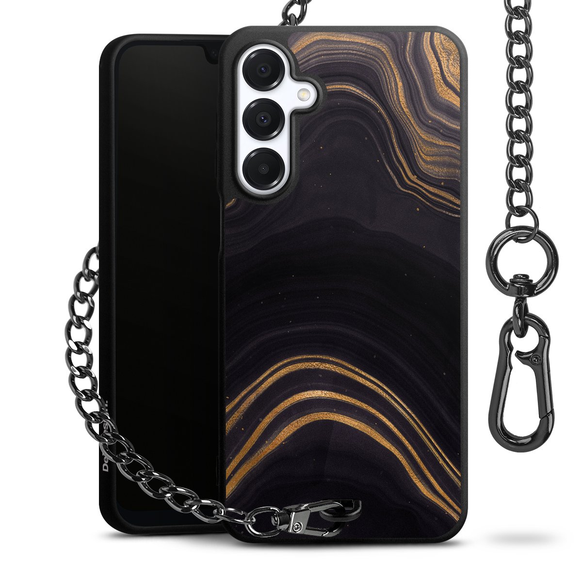 • Mattschwarze Handyhülle mit Metallkette