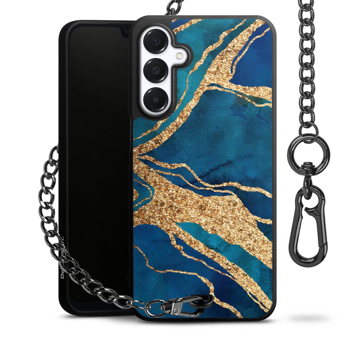 • Mattschwarze Handyhülle mit Metallkette