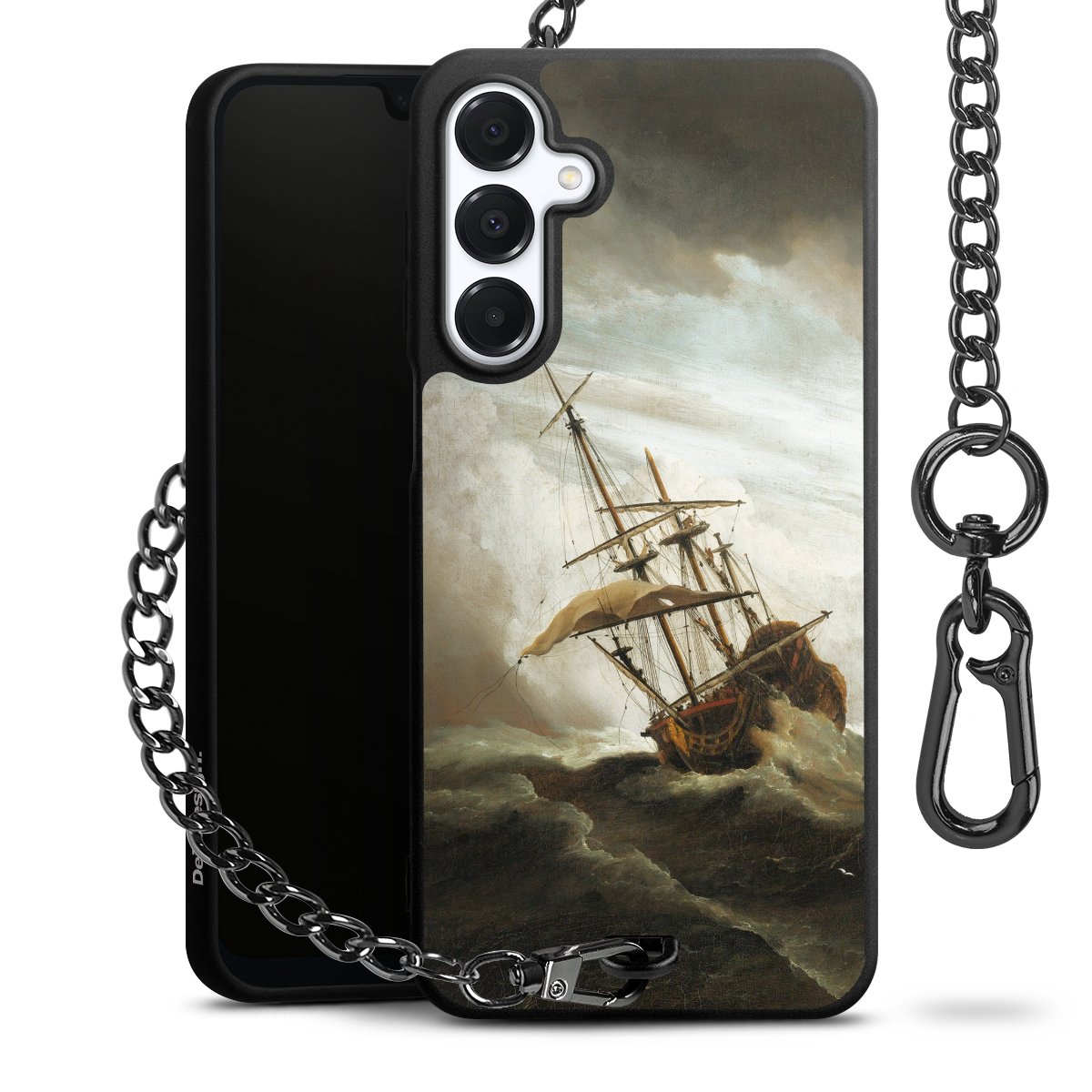 - Mattschwarze Handyhülle mit Metallkette