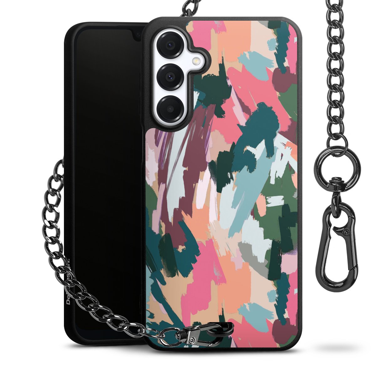 • Mattschwarze Handyhülle mit Metallkette