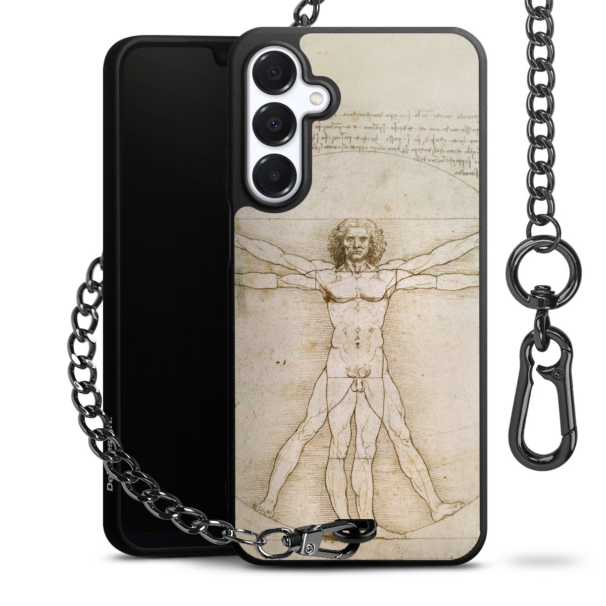 Die mattschwarze Silikon-Handyhülle besteht aus robustem TPU (thermoplastisches Polyurethan). Sie ist flexibel und schützt Dein Smartphone vor Stößen und Kratzern. Die Kette sowie der Karabinerhaken sind aus Metall in Gunmetal-Optik gefertigt. Für dieses Produkt kommen ausschließlich TÜV-geprüfte Materialien zum Einsatz.