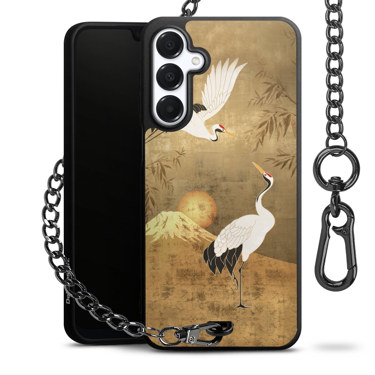 • Mattschwarze Handyhülle mit Metallkette